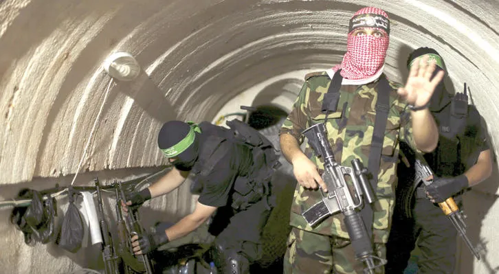 صورة تعود لعام 2014 لعناصر كتائب القسام في أحد الأنفاق (رويترز)