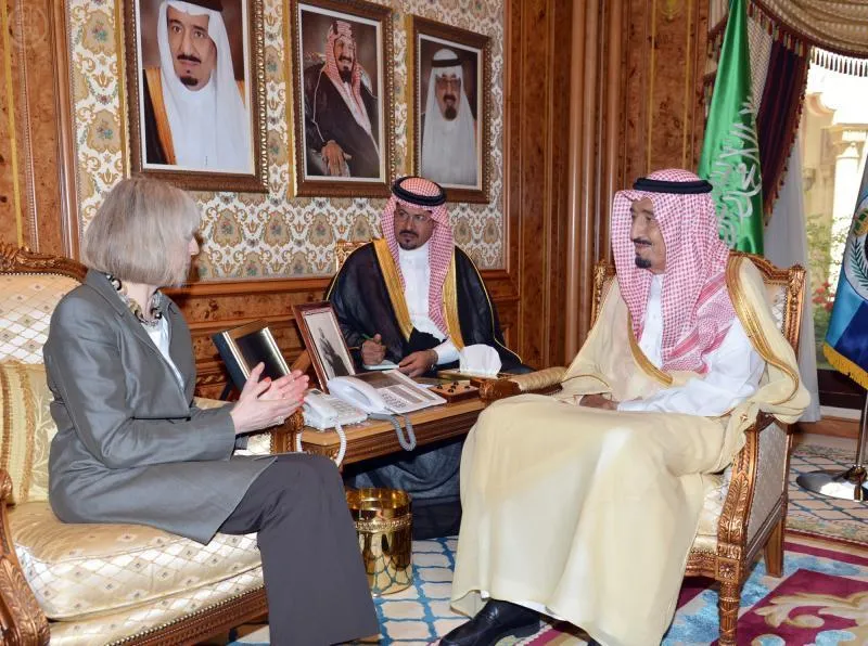 استقبل الأمير سلمان بن عبد العزيز ولي العهد نائب رئيس مجلس الوزراء وزير الدفاع السعودي في مكتبه بالرياض اليوم وزيرة الداخلية البريطانية تريزا ماي والوفد المرافق لها.
