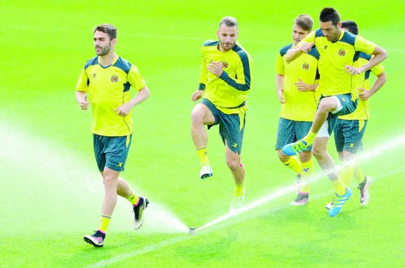 لاعبو فياريال خلال التدريبات استعدادًا لمواجهة ليفربول (أ.ف.ب)