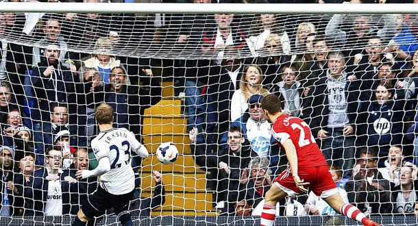 إريكسون نجم توتنهام ومنقذه (رقم 23) يسجل هدفه الثاني في شباك ساوثهامبتون (رويترز)