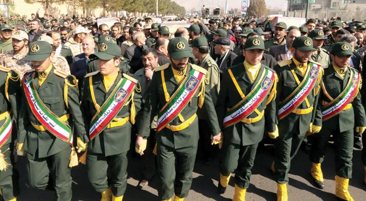أفراد الحرس الثوري يشاركون في مسيرة نظمت في العاصمة طهران (أ.ف.ب)