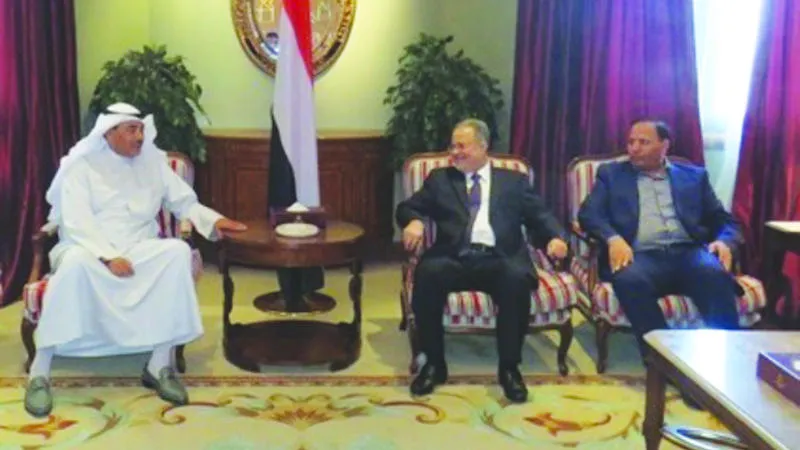 رئيس الوزراء وزير الخارجية رئيس الوفد الحكومي في مشاورات الكويت عبد الملك المخلافي يبلغ النائب الأول لرئيس الوزراء وزير الخارجية الكويتي الشيخ صباح خالد الحمد الصباح بقرار الوفد تعليق جلسات المشاورات أمس (سبأ)