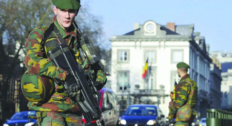 انتشار أمني في العاصمة البلجيكية عقب تفجيرات بروكسل في 22 مارس الماضي («الشرق الأوسط»)