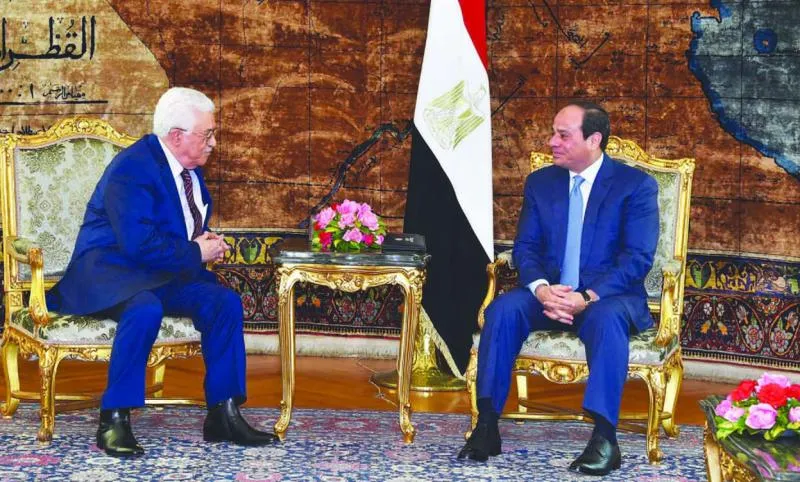 الرئيس السيسي خلال استقباله الرئيس عباس أمس (أ.ب)