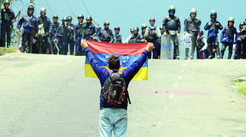 جانب من الاحتجاجات التي نظمتها المعارضة الفنزويلية في مدينة سان كريستوبال للمطالبة بتنحية الرئيس مادورو (أ.ف.ب)