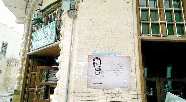 مقطع للشاعر كاظم الحجاج على واجهة مقهى الشابندر