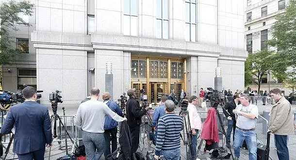 عدسات المصورين الصحافيين امام محكمة مانهاتن في نيويورك في انتظار مثول قيادي القاعدة أبو أنس الليبي امس «ا. ب. ا}
