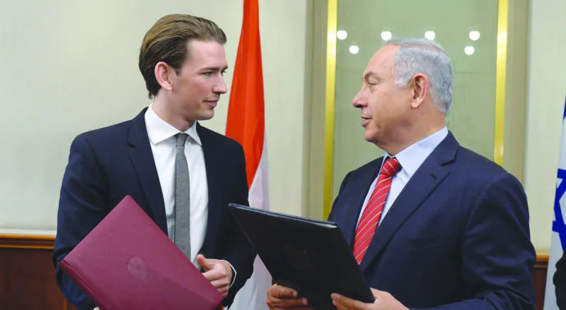 نتنياهو خلال لقائه وزير الخارجية النمساوي سيباستيان كورتس أمس (إ.ب.أ)