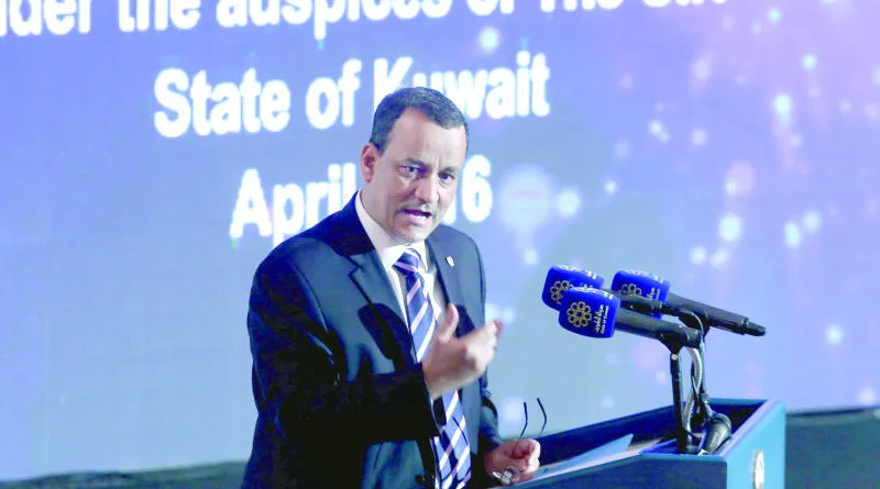 المبعوث الأممي إسماعيل ولد الشيخ أحمد خلال مؤتمر صحافي في وزارة الإعلام الكويتية (أ.ف.ب)