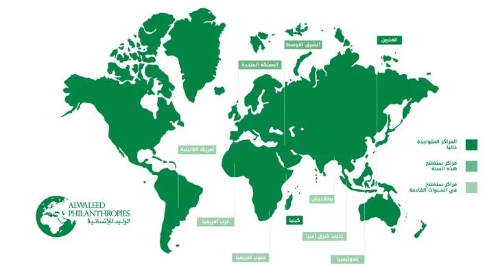 وتتميز "الوليد" للإنسانية بما تقدمه من خبرة من خلال شركائها العالميين للوصول الى أكبر عدد من المتضررين؛ فقد تم انشاء مراكز في الفلبين وكينيا. ومن ضمن الخطط المستقبلية للمؤسسة إطلاق مركزين آخرين خلال العام الحالي، أحدهما في المملكة المتحدة والآخر في الشرق الأوسط، كما أعلنت المؤسسة انها ستطلق مراكز في كل من أميركا اللاتينية، وجنوب وغرب أفريقيا.