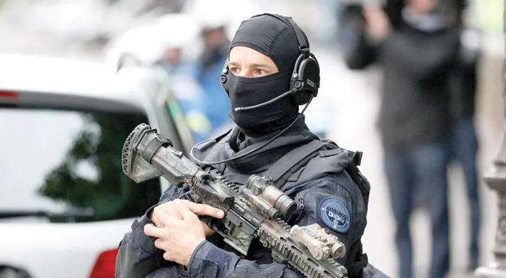 الشرطة الفرنسية تؤمن شوارع باريس خلال نقل صلاح عبد السلام أحد منفذي هجمات باريس الإرهابية إلى محكمة للاستماع لأقواله أول من أمس (أ.ف.ب)