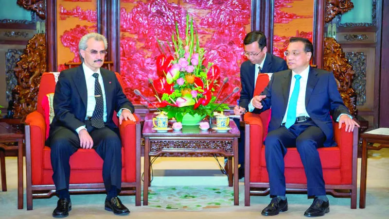 الأمير الوليد بن طلال خلال لقائه مع رئيس الوزراء الصيني في بكين