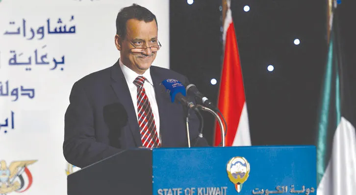 ولد الشيخ لدى حضوره إحدى جلسات المشاورات اليمنية بين الشرعية والانقلابيين في الكويت في 26 مايو الماضي (أ.ف.ب)