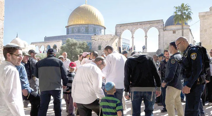 مجموعة من اليهود اليمينيين يسيرون في احدى ساحات المسجد الاقصى (إ.ب.أ)