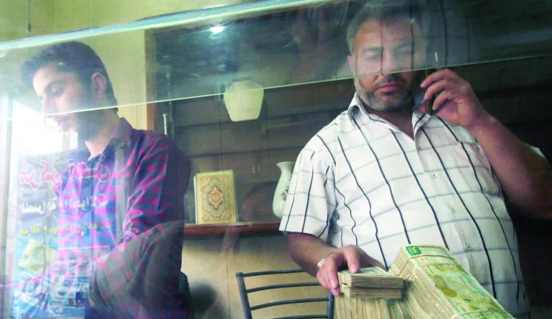صراف عملات أجنبية داخل محله في القسم الشرقي من حلب منتصف الشهر الماضي (رويترز)