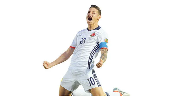 رودريغيز يحتفل بعد أن شارك مصابًا وسجل هدفًا لكولومبيا في مرمى باراغواي (ا ف ب)