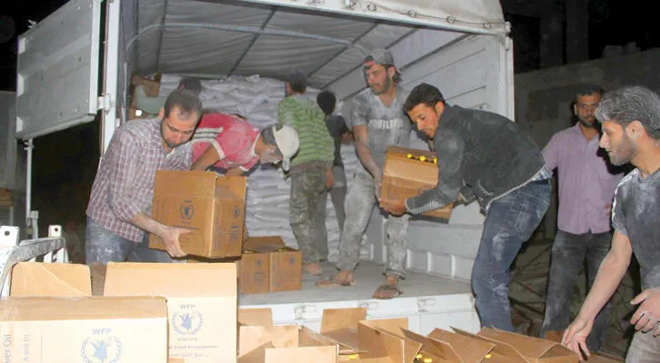 الأمم المتحدة أحصت نحو 593000 شخص يقيمون في 19 منطقة محاصرة، وطلبت موافقة دمشق لتسليم المساعدات إلى 17 منها، مستثنية دير الزور التي يحاصرها تنظيم داعش، حيث تلقي منظمة الأغذية والزراعة (الفاو) المساعدات من الجو بموافقة دمشق، ومخيم اليرموك حيث حصلت وكالة غوث اللاجئين الفلسطينيين على موافقة جزئية. وبعدما كان الهلال الأحمر السوري قد نجح بالتعاون مع الأمم المتحدة ليل الخميس الجمعة من إدخال قافلة من تسع شاحنات من المساعدات إلى داريا، حال قصف النظام العشوائي والكثيف بالبراميل المتفجرة، بحسب ما أكد ناشطون دون القدرة على توزيع المساعدات على العائلات. وقال أسامة أبو زيد المستشار القانوني للجيش السوري الحر، الذي يتحدر من داريا، لـ«الشرق الأوسط» إن قافلة المساعدات احتوت على 9 شاحنات، ثلاث منها تضم مواد إغاثية بعدد 480 سلة غذائية بينما احتوت الشاحنات الأخرى على شوادر وسلال صحية (أدوية وأدوات طبية). وأشار إلى أنّ قصف النظام على المنطقة لم يتوقف حتى خلال دخول المساعدات، إنما زادت وتيرته بشكل كثيف بعد تفريغ المساعدات ومغادرة الوفد، ولا سيما على الجبهة الغربية التي استهدفت بالرشاشات الثقيلة والهواوين، وهو الأمر الذي لا يزال يحول دون توزيع المساعدات على العائلات.