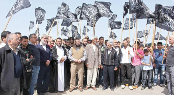 أقارب اللبنانيين المفقودين في معارك قلعة الحصن يحتجون على الحدود الشمالية اللبنانية أمس (رويترز)
