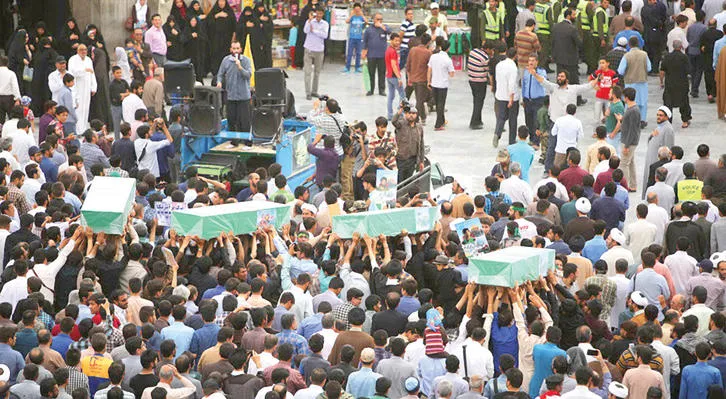 تشییع أربعة من قتلى فيلق «فاطميون» أول من أمس في قم (وكالة مهر)