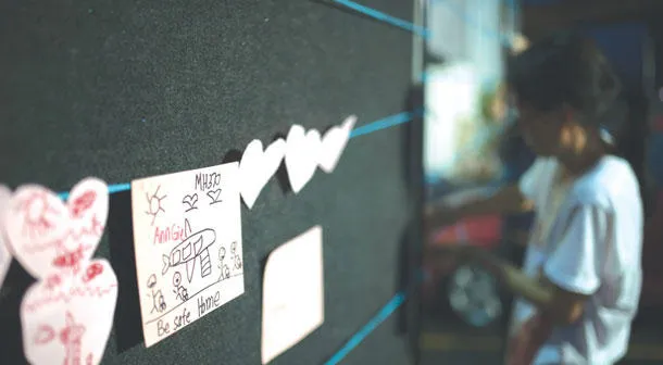 رسائل من عوائل ضحايا الطائرة الماليزية المفقودة في العاصمة كوالالمبور، أمس (إ.ب.أ)