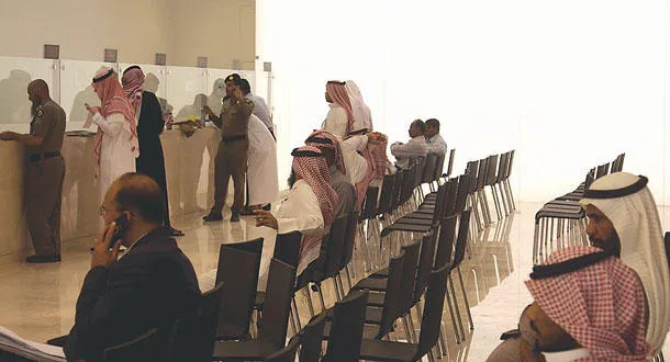 مراجعون يستفسرون عن الدعاوى والأحكام في المحكمة الجزائية في الرياض (تصوير: عبد الله الشيخي)