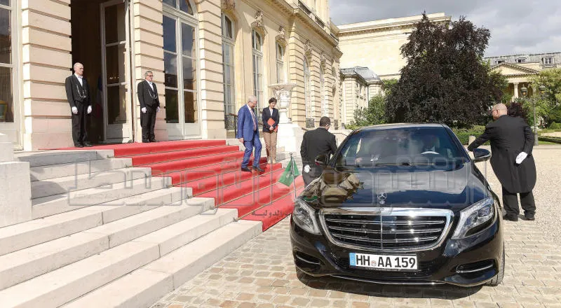 ولي ولي العهد السعودي لدى وصوله مبنى البرلمان وفي الصورة رئيس البرلمان كلود بارتولون أثناء نزوله للترحيب بالضيف السعودي ( تصوير عمار عبد ربه)