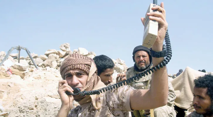 قوات الشرعية تنجح في الصمود في معارك ضارية مختلفة ضد الميليشيات ويبدو المقاتلون في جبهة مأرب أول من أمس (أ.ف.ب)
