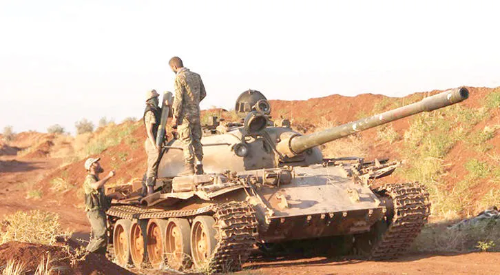تجهيز الدبابات خلال معركة استعادة النقاط في جبهة الملاح شمال حلب، امس (عدسة: أحرار الشام)