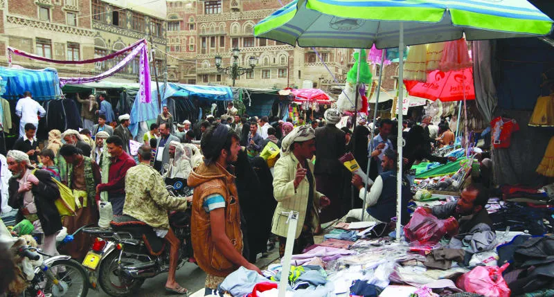 تواصل الأسواق الشعبية استقبال الزبائن المتهيئين للعيد رغم معاناة اليمن وأهله من الميليشيات الانقلابية (أ.ف.ب)