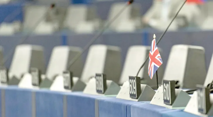 علم بريطانيا خلال جلسة للبرلمان الأوروبي في ستراسبورغ (ا.ب.أ)
