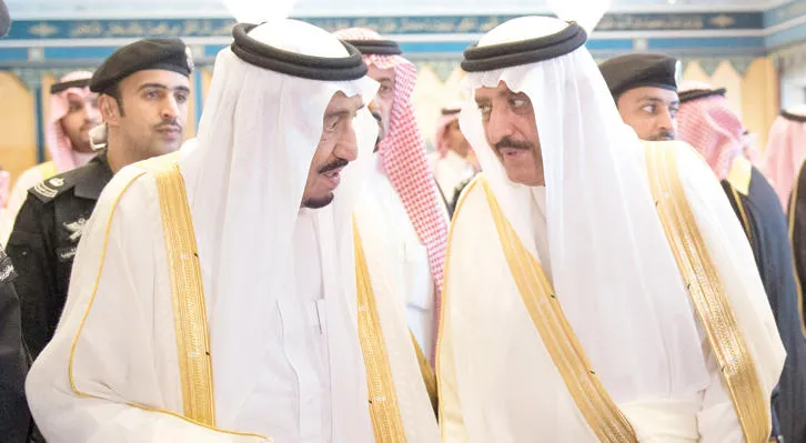 استقبل خادم الحرمين الشريفين الملك سلمان بن عبد العزيز في قصر الصفا بمكة المكرمة أمس عقب صلاة عيد الفطر، تمام سلام رئيس وزراء لبنان، وسعد الحريري رئيس وزراء لبنان الأسبق، وآدم شريف وزير الدفاع المالديفي، والأمراء والمشايخ والوزراء وكبار المسؤولين الذين قدّموا له التهنئة بالعيد. وتظهر لصورة جانبًا من حديث جانبي بين الملك سلمان والأمير أحمد بن عبد العزيز خلال الاستقبال (واس)