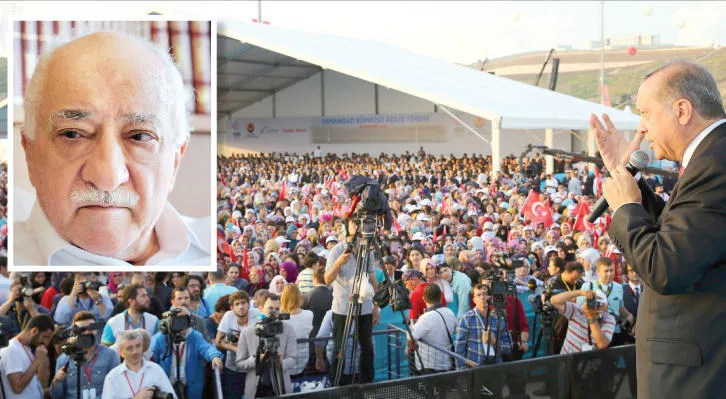 الرئيس التركي رجب طيب إردوغان يلقي كلمة خلال تدشينه لجسر عثمان غازي في الـ 30 من الشهر الماضي (أ.ف.ب).. وفي الإطار الداعية التركي فتح الله غولن (أ.ف.ب)