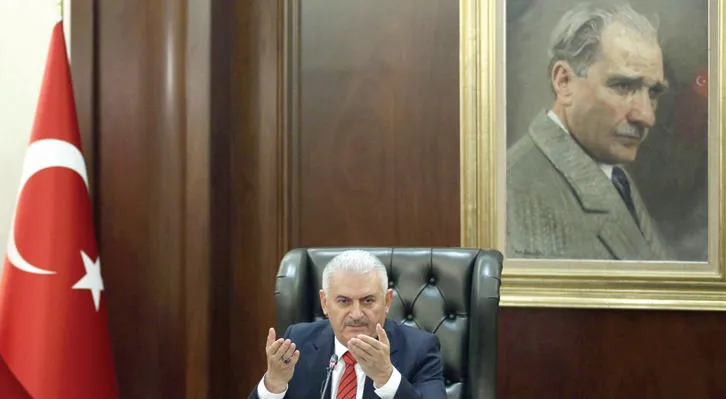 رئيس الوزراء التركي بن علي يلدريم خلال لقاء سابق مع أعضاء الحكومة في قصر كانكاية في أنقرة (أ. ف. ب)