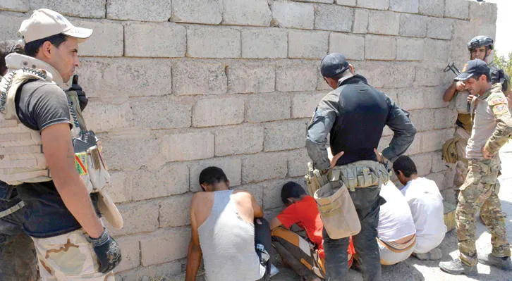 دورية أمنية تحقق مع مواطنين جرى إيقافهم بالقرب من قاعدة عسكرية بضواحي الموصل (أ.ف.ب)