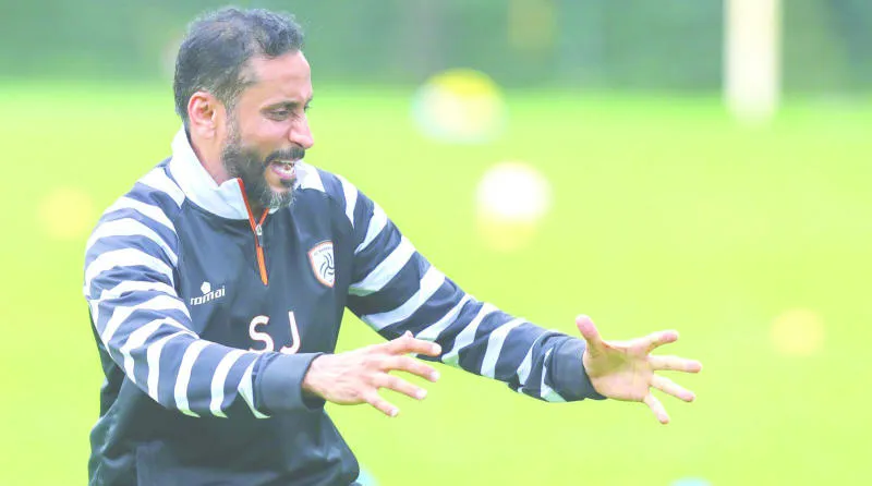 الجابر مدرب الشباب متفاعلا مع الحصة التدريبية أمس (المركز الإعلامي لنادي الشباب)
