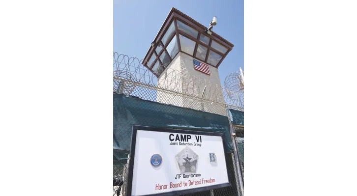 مدخل المعسكر السادس في غوانتانامو حيث يُحتجز عدد من المعتقلين غير الخطرين «أ.ف.ب»