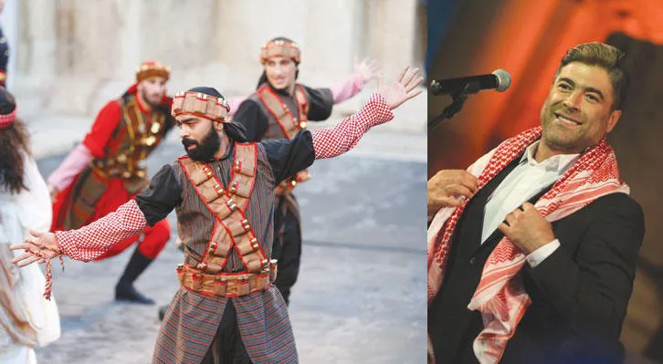 المغني اللبناني يرتدى الكوفية الأردنية الحمراء - جانب من فعاليات افتتاح مهرجان «جرش» (رويترز)
