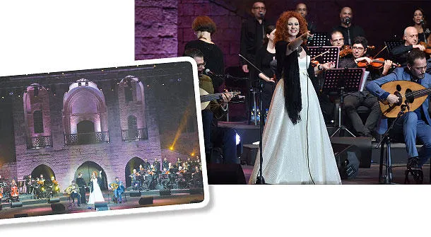 المغنية السورية لينا شاماميان خلال الحفل - جانب من الحفل في مسرح قصر «بيت الدين» ({الشرق الأوسط})