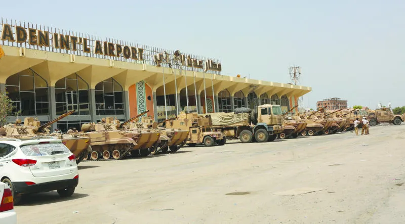 جانب من الآليات العسكرية التابعة للتحالف لحماية مطار عدن (رويترز)
