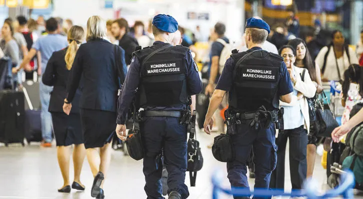 إجراءات أمنية مشددة حول وداخل مطار سخيبول في العاصمة الهولندية أمستردام.. عقب تلقي السلطات إشارات تفيد بوجود تهديدات إرهابية (إ.ب.أ)