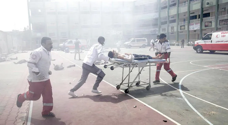 عمال إنقاذ فلسطينيون خلال تمرين في رفح جنوب قطاع غزة أول من أمس (أ.ف.ب)