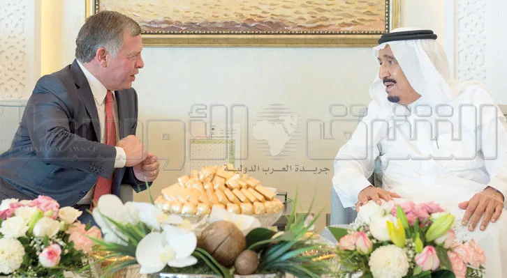 الملك سلمان بن عبد العزيز والعاهل الأردني خلال لقائهما أمس (تصوير: بندر الجلعود)