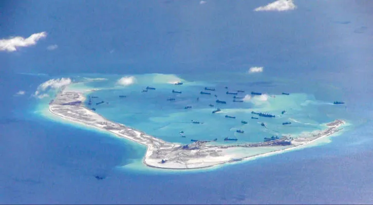 تمارس الصين أحقيتها في السيادة على معظم أنحاء بحر الصين الجنوبي الذي تمر منه تجارة بحرية يقدر حجمها بخمسة تريليونات دولار سنويًا، وهو ما يدخلها في نزاع مع الفلبين وفيتنام وماليزيا وتايوان وبروناي، التي تطالب جميعها بالسيادة على أجزاء من البحر. ولهذا فقد قامت، كما بينت بعض الصور التي التقطتها مؤخرًا أقمار صناعية، بخطوات أحادية الجانب، على الرغم من قرار محكمة دولية في لاهاي يرفض أحقية الصين في السيادة على المنطقة الغنية بالموارد. ورفضت الصين القرار بشكل قاطع.