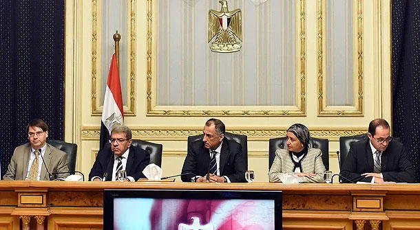 محافظ البنك المركزي المصري ووزير المالية المصري ومبعوث صندوق النقد الدولي يعلنون الاتفاق على القرض أمس