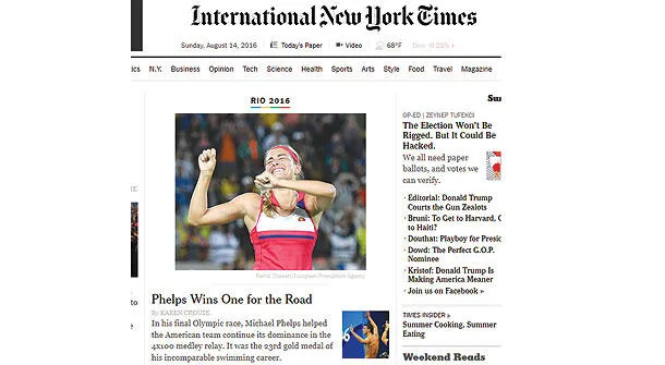 الأزمات على أنواعها لم تغيب أخبار فوز عملاق الجودو الفرنسي «تيدي رينير» بالذهب في ريو، وقد خصصت له «لوبالريزيان» الغلاف: بـ«ذهب خالص» كما عنونت، في حين اختارت «ليبراسيون» أن تخصص الغلاف للزعيم الكوبي «فيديل كاسترو» الذي يحتفل اليوم بعيده التسعين.