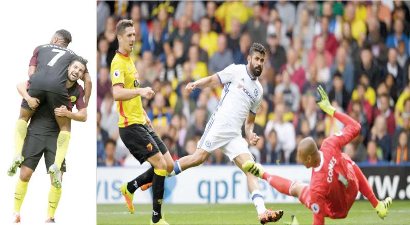 كوستا ينقذ تشيلسي للمرة الثانية في الدقائق الأخيرة (رويترز) - مهاجم سيتي نوليتو يحتفل مع ستيرلينغ بهدفه الثاني (رويترز)