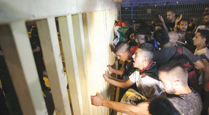 فلسطينيون يحتجون ضد الاعتقال الإداري في عسقلان أمس (أ.ف.ب)