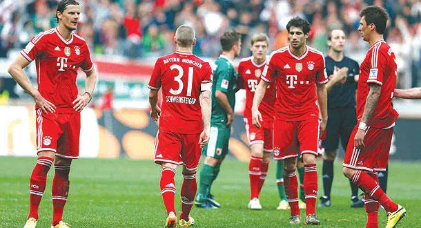 آثار الهزيمة على وجوه لاعبي بايرن ميونيخ بعد السقوط أمام أوغسبورغ (رويترز)
