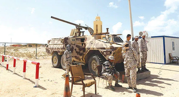 نقطة أمنية لحراسة بئر نفطي في الزويتنية أمس (رويترز)