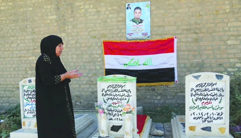 عراقية تزور قبر قريب لها بمقبرة ببغداد في أول أيام عيد الأضحى المبارك أمس (أ.ب)